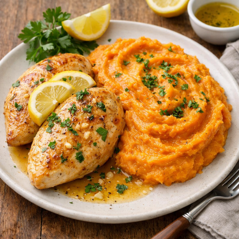 Pechuga de pollo al limón con puré de boniato: receta saludable y rápida