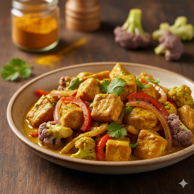 Salteado de Pollo o Tofu con Coliflor al Curry: Receta Saludable y Rápida