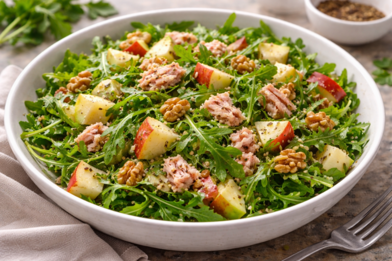 Ensalada de rúcula con atún, manzana y nueces | Receta saludable y rápida