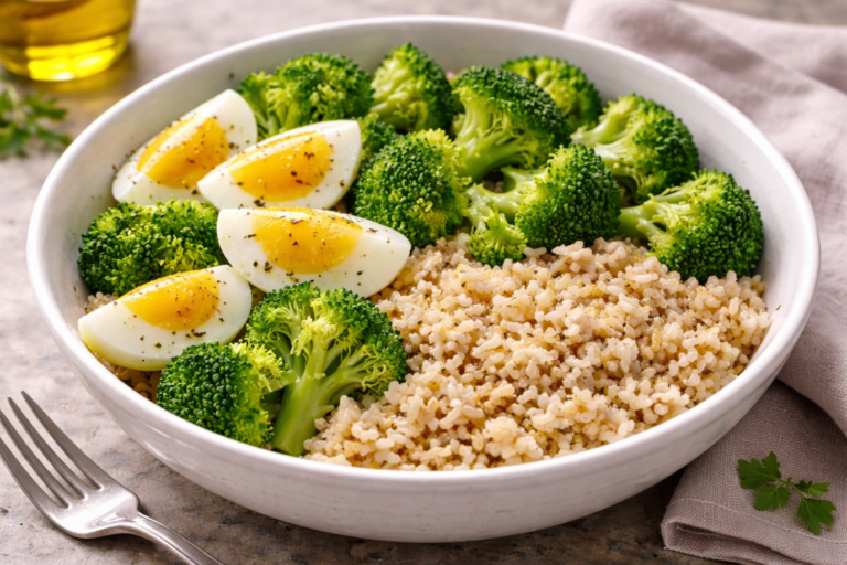 Bowl de arroz integral frío con brócoli y huevo: saludable y fácil
