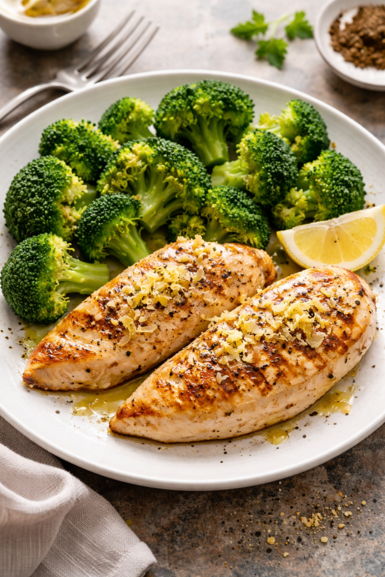 Pechuga de pollo a la plancha con brócoli al vapor y jengibre | Receta saludable y rápida