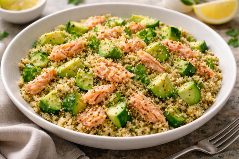 Quinoa con salmón, pepino y aguacate | Receta saludable rica en Omega-3