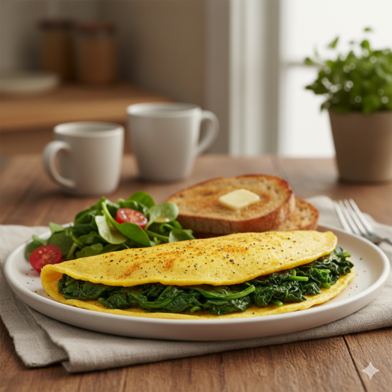 Tortilla de Huevos con Espinacas y Cúrcuma: Energía Estable en 10 Minutos